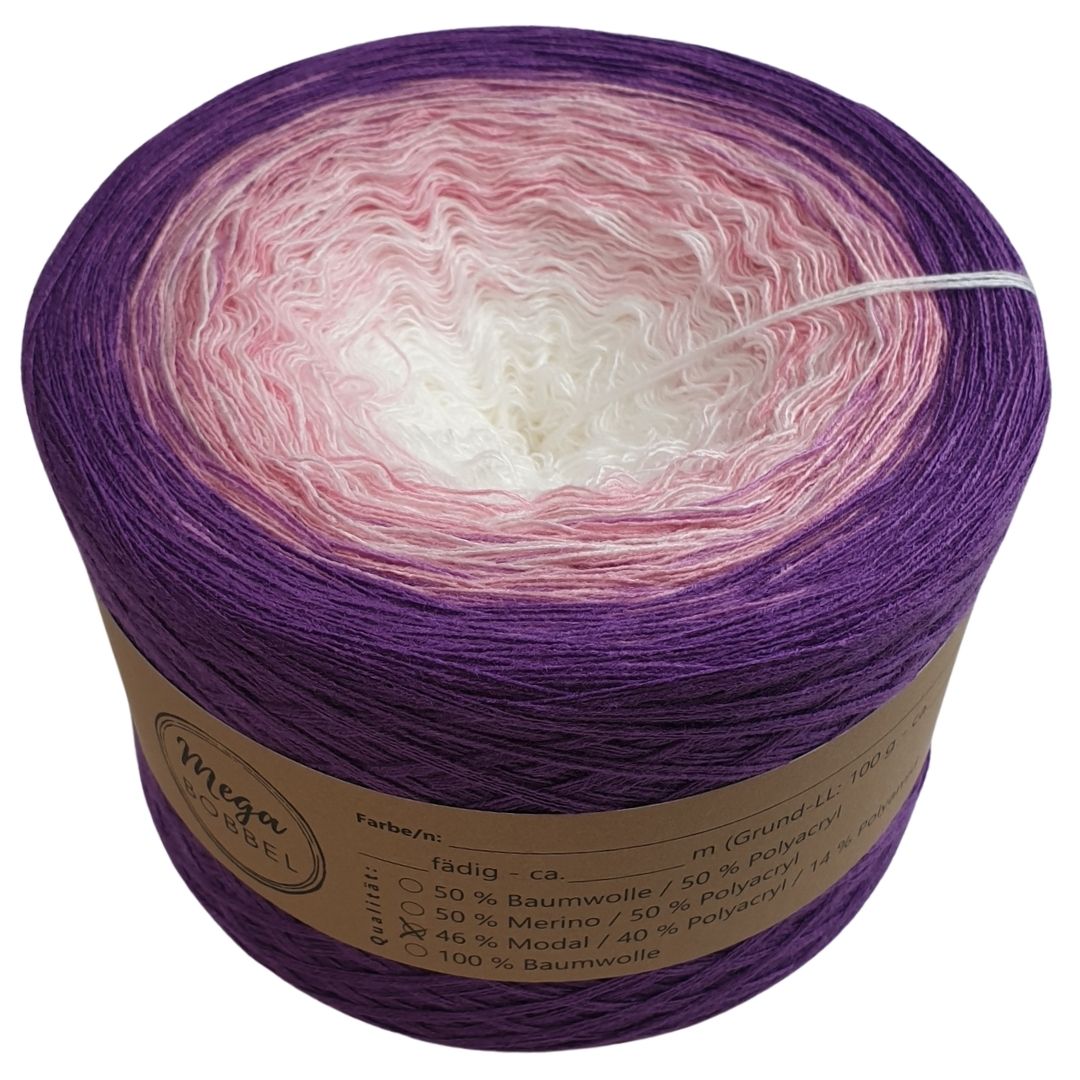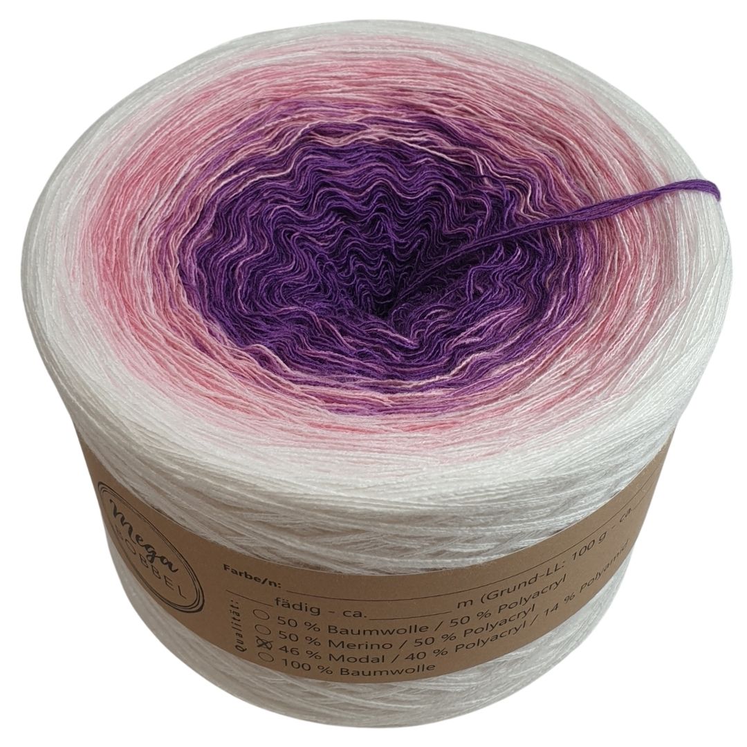 Hinweis: Die Modalverläufe sind nur bis 2000m eingestellt. Gerne können wir auch größere Verläufe für dich wickeln. Wenn du für eine Decke z.B. einen Verlauf über 4000m benötigst, dann teilen wir diesen auf 2 Bobbel auf. Dazu kannst du dir dann 2 Bobbel mit 2000m Lauflänge in den Warenkorb legen und uns in das Bemerkungsfeld schreiben, dass du den Verlauf einmal auf 4000m möchtest. Oder schreibe uns gerne an, wenn du Fragen dazu hast. Email: megabobbel@gmx.de