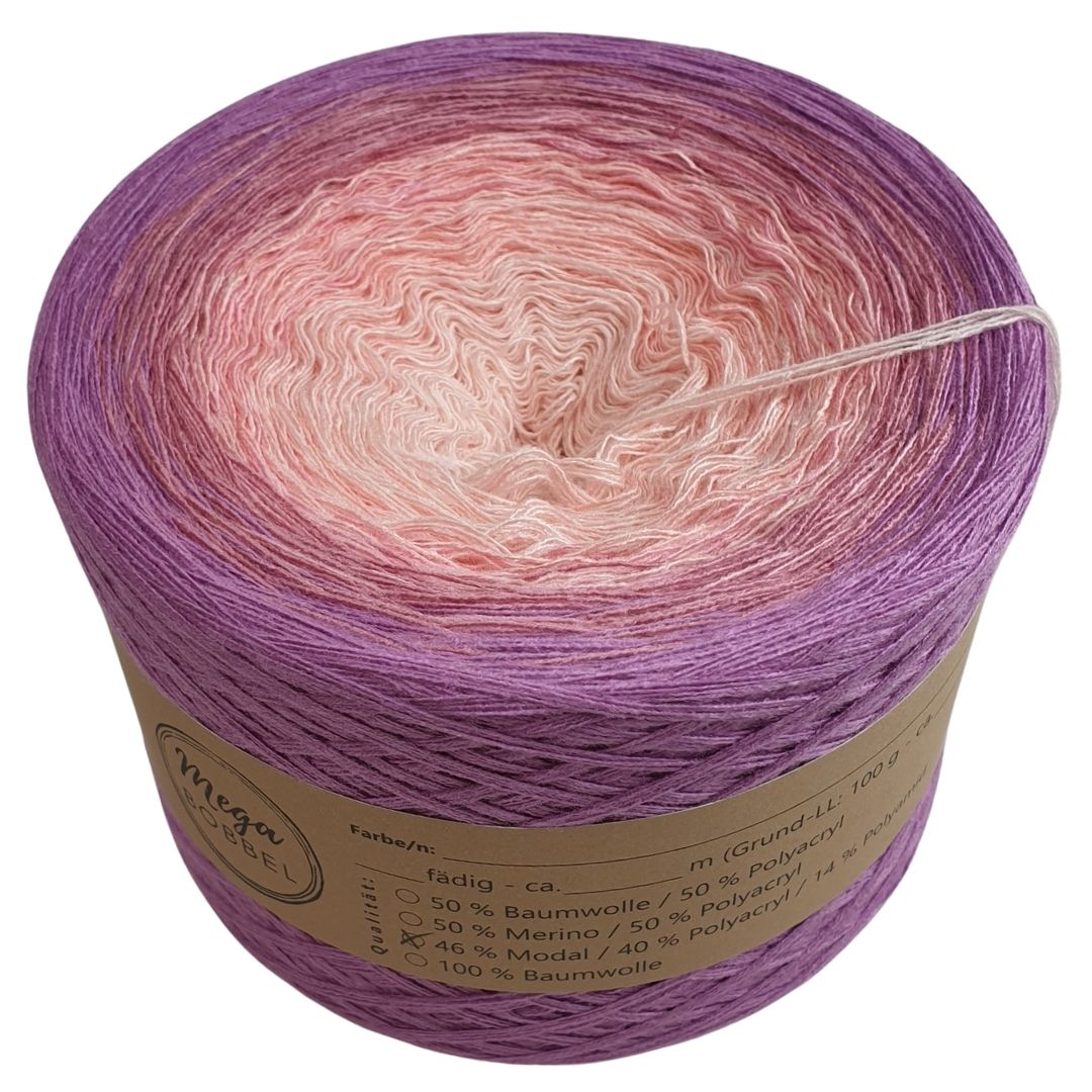 Hinweis: Die Modalverläufe sind nur bis 2000m eingestellt. Gerne können wir auch größere Verläufe für dich wickeln. Wenn du für eine Decke z.B. einen Verlauf über 4000m benötigst, dann teilen wir diesen auf 2 Bobbel auf. Dazu kannst du dir dann 2 Bobbel mit 2000m Lauflänge in den Warenkorb legen und uns in das Bemerkungsfeld schreiben, dass du den Verlauf einmal auf 4000m möchtest. Oder schreibe uns gerne an, wenn du Fragen dazu hast. Email: megabobbel@gmx.de